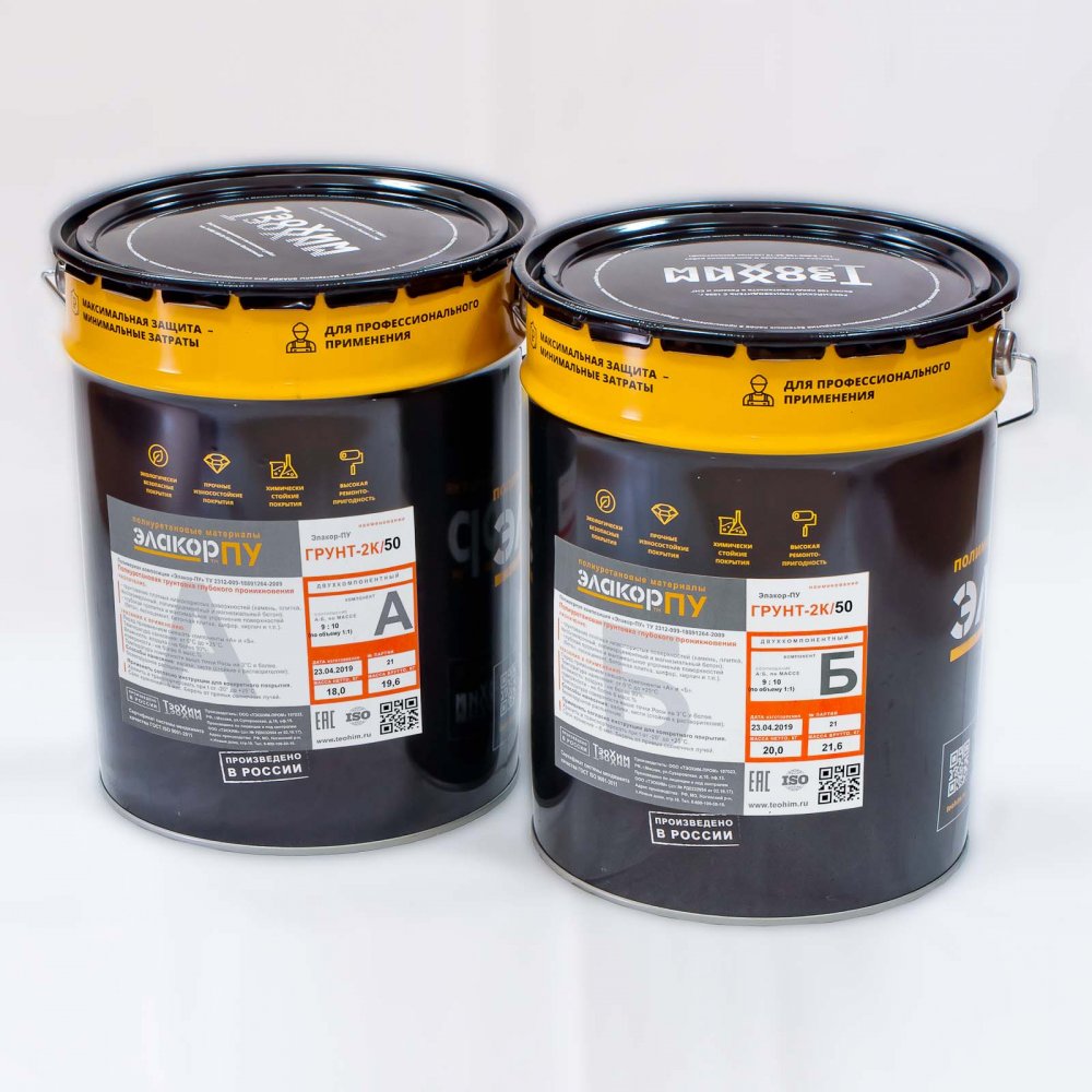 Грунтовка глубокого проникновения – Элакор-ПУ Грунт-2К/50 - двухкомпонентная полиуретановая.